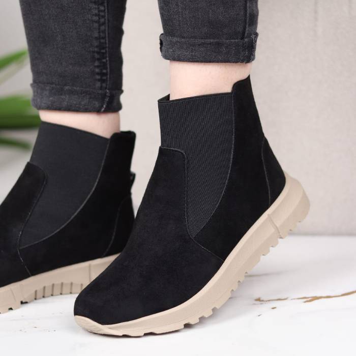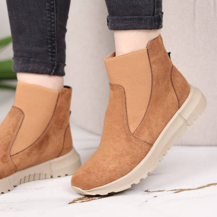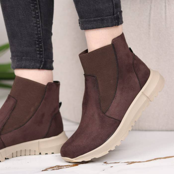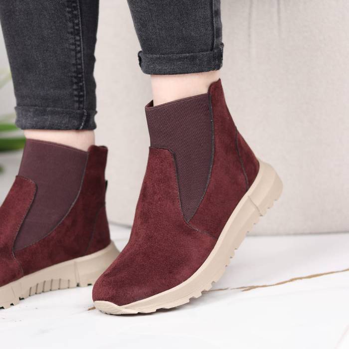 Boots femme en croûte de cuir, confortables et élégantes, avec semelles orthopédiques offrant un excellent maintien et semelle antidérapante pour plus de sécurité au quotidien.