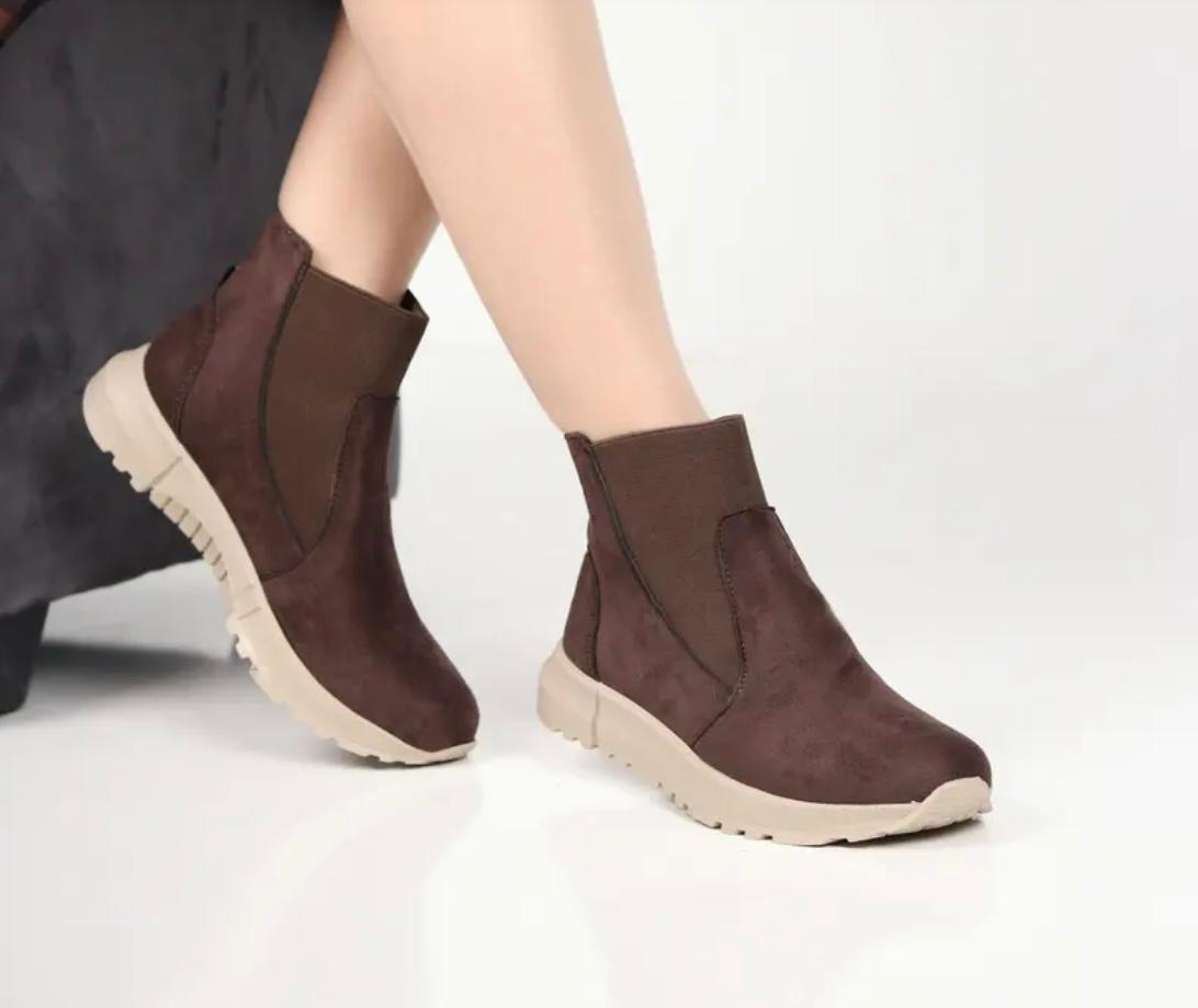 Boots femme en croûte de cuir, confortables et élégantes, avec semelles orthopédiques offrant un excellent maintien et semelle antidérapante pour plus de sécurité au quotidien.