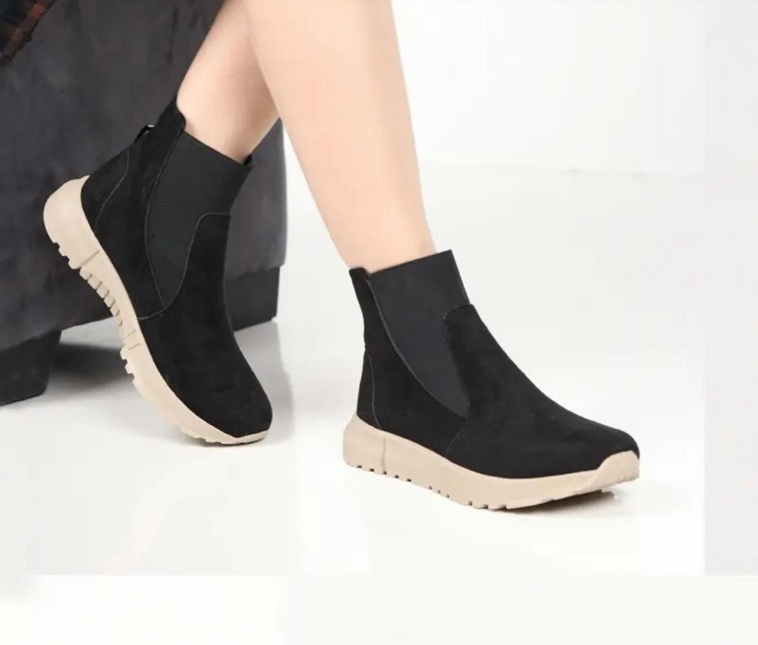 Boots femme en croûte de cuir, confortables et élégantes, avec semelles orthopédiques offrant un excellent maintien et semelle antidérapante pour plus de sécurité au quotidien.